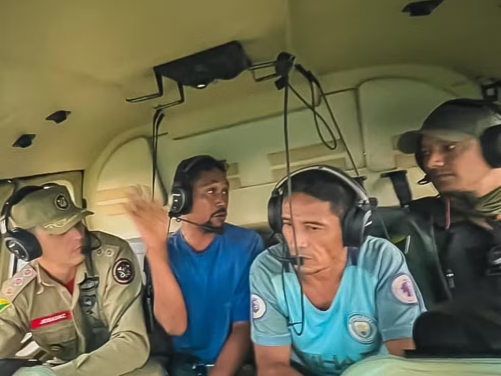 Os caçadores Edson Nascimento de Araújo, de 51 anos, e Francisco Marcos da Silva Lima, de 31, foram resgatados de helicóptero nessa sexta-feira (20) após se perderem em uma mata próximo ao Rio Cruzeiro do Vale, zona rural de Porto Walter, interior do Acre.