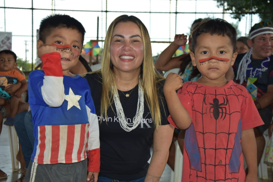 A prefeita Fernanda Hassem destaca a ações realizadas de valorização da cultura e saberes dos povos indígenas.“Estamos hoje aqui no bairro Leonardo Barbosa, na comunidade 28 de Maio com os Povos Jaminawa, temos mais 230 Jaminawa residindo aqui. Fizemos várias atividades com eles, fizemos entrega de melhorias nas ruas, oferecemos um almoço de confraternização e agora vão participar de apresentações de cultura, dança, canto, artesanato, fazendo a valorização dos povos indígenas”, destacou.