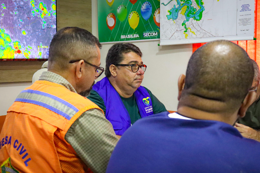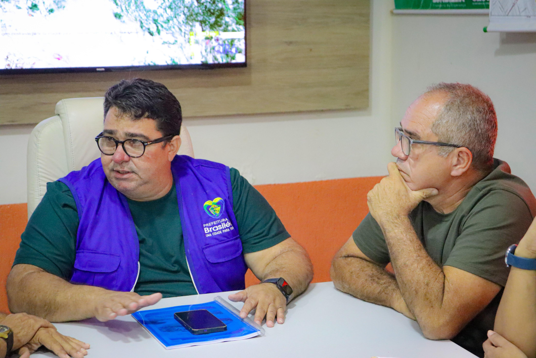 A reunião aconteceu na Sala de Situação, Comando e Monitoramento da Defesa Civil Municipal e contou com a presença de secretários municipais, equipes técnicas da prefeitura e da Defesa Civil Municipal, e o major Emerson Sandro, coordenador da Defesa Civil.