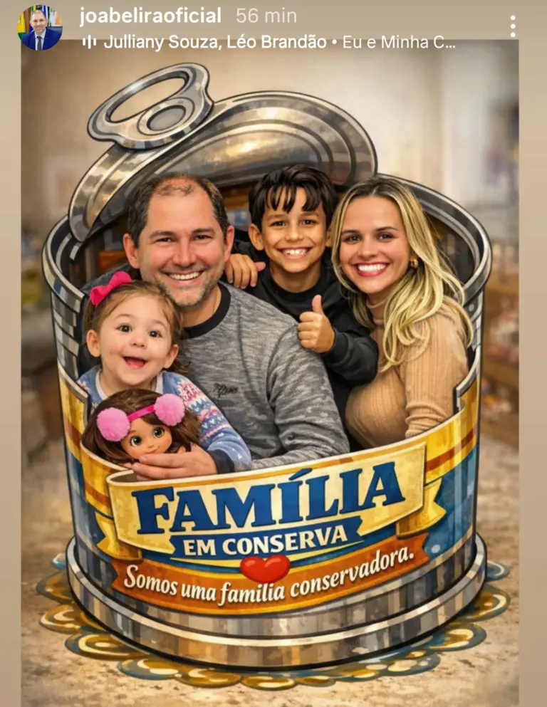 Outro político acreano que também participou da trend foi o deputado estadual Arlenilson Cunha (PL), que compartilhou uma montagem semelhante com uma foto de sua família e usou a publicação para reforçar um discurso de valores conservadores e religiosos.