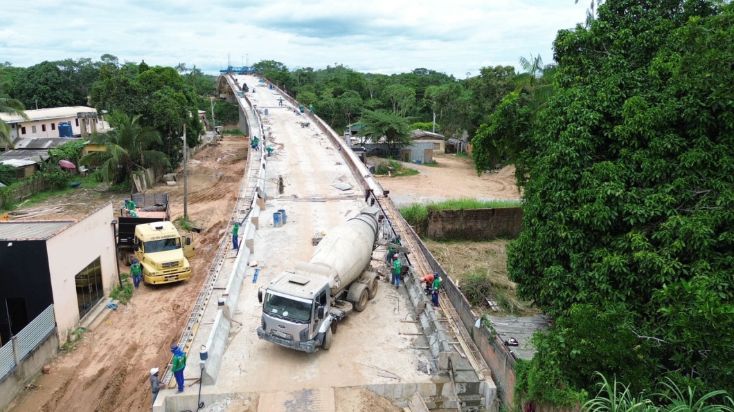 Atualmente, as equipes do Deracre estão concluindo a armação e aplicando estruturas de ferro e concreto que dão resistência e segurança à ponte; instalando os guarda-rodas e nivelando os chumbadores do guarda-corpo, garantindo proteção para veículos e pedestres; iniciando a terraplanagem e a pavimentação, preparando a base da estrada e deixando a superfície pronta para o tráfego; e desmontando as treliças do balanço sucessivo, estruturas provisórias utilizadas para sustentar a ponte durante a construção.