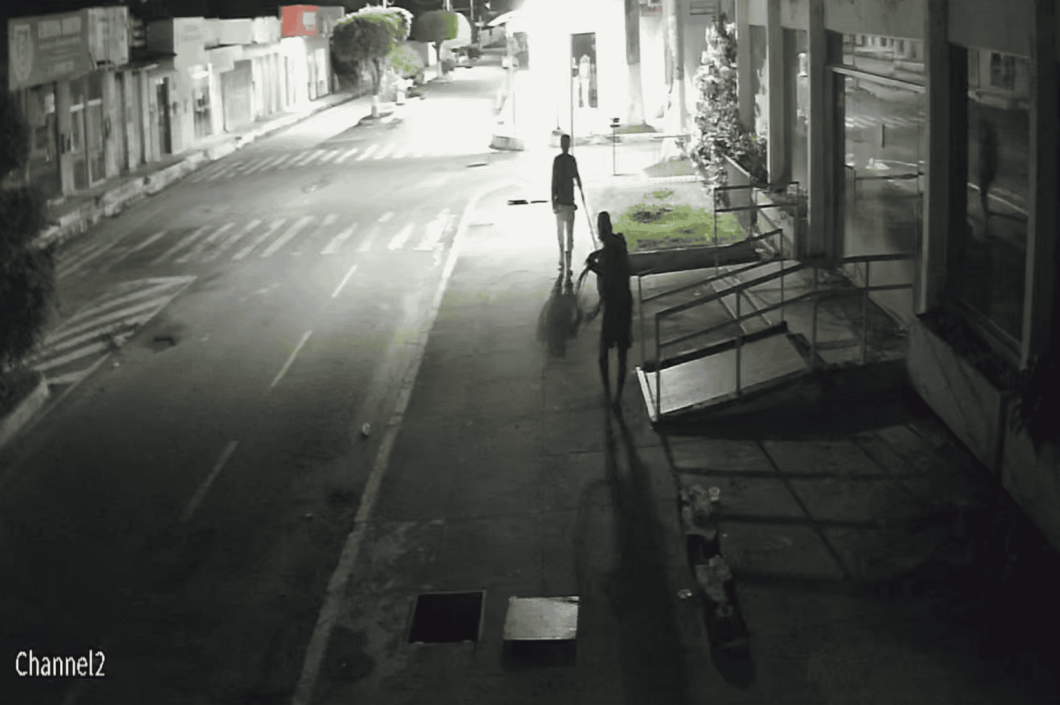 Na noite seguinte, por volta das 23h30 do dia 20, uma nova tentativa foi registrada no mesmo local. As imagens mostram os indivíduos iniciando o furto, mas a ação foi interrompida após a chegada de um homem em uma motocicleta. Após uma breve conversa, os suspeitos fugiram correndo.