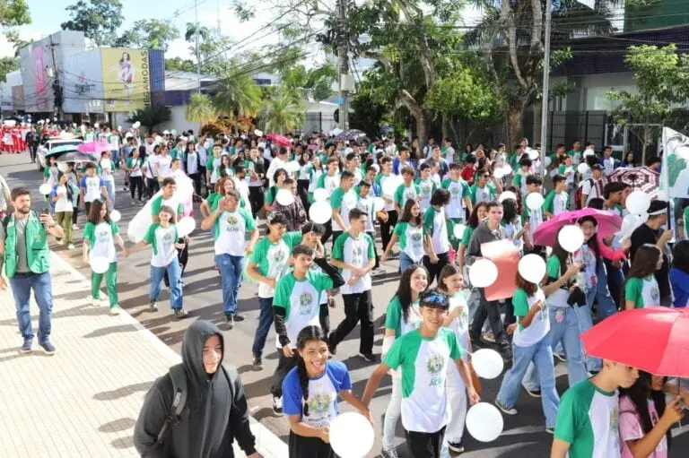 A manhã desta sexta-feira (10) transformou o Centro de Rio Branco em um cenário de mobilização social. Cerca de mil estudantes da rede pública de ensino realizaram a Caminhada pela Paz, ato que marcou o encerramento da Semana Nacional de Convivência Escolar no Acre. A iniciativa, coordenada pela Secretaria de Estado de Educação e Cultura (SEE) em parceria com o Ministério da Educação (MEC), levou para as ruas as discussões iniciadas em sala de aula desde a última segunda-feira (6).