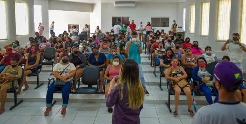 A Prefeita Fernanda Hassem junto com o coordenador Júnior TRZ realizaram as entregas das cestas básicas para as mulheres presentes.