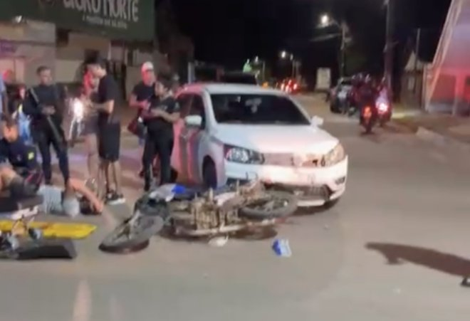 A colisão ocorreu em um cruzamento em frente a uma casa lotérica e envolveu uma motocicleta e um Volkswagen Gol. Durante patrulhamento, uma guarnição policial se deparou com a ocorrência.