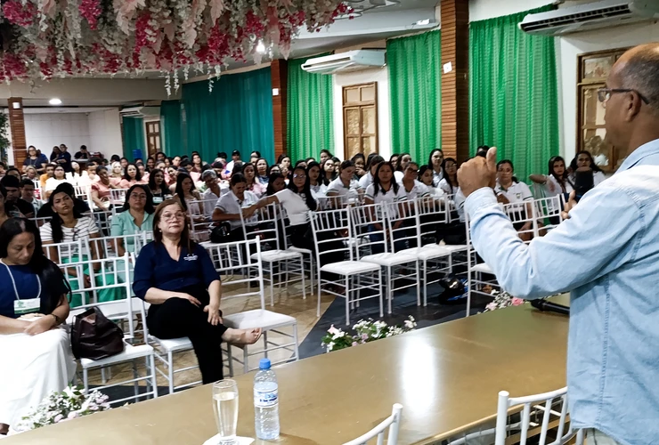 Ela destacou a importância da união entre professores, gestores, conselho de educação e equipe técnica da Secretaria Municipal de Educação, reforçando que liderança se constrói com diálogo, escuta e capacidade de resolver conflitos.