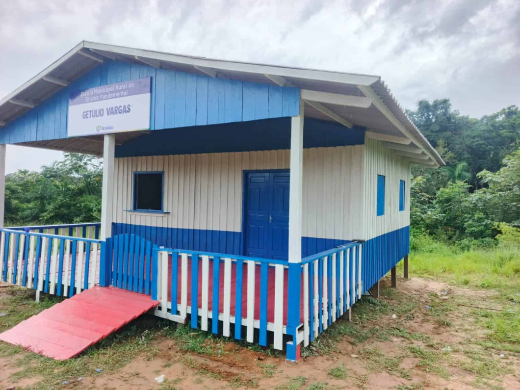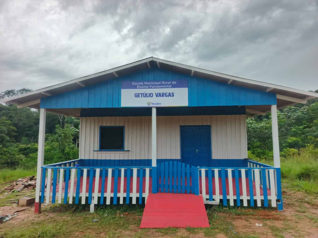 A Prefeitura de Brasiléia, por meio da secretaria municipal de Educação, concluiu a construção da escola Getúlio Vargas, localizada no km 84 + 50 quilômetros de ramal, totalizando 134 km de distância da sede do município.