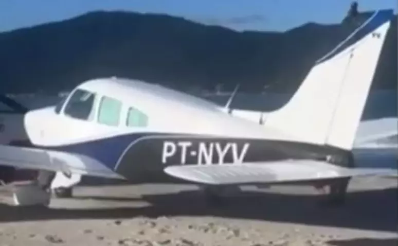Um avião de pequeno porte fez um pouso de emergência na areia da Praia do Sonho, em Palhoça, na Grande Florianópolis, em Santa Catarina, no sábado, 10.