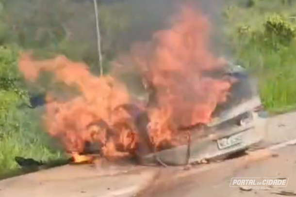 Quatro pessoas morrem carbonizadas em acidente na BR-364 próximo a Candeias do Jamari